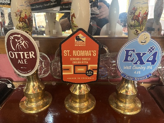 We have some great cask ales for you this week. We start with our beer of the month Otter Ale from Otter Brewery, St Nonna's ruby bitter from Firebird Brewing Co. in Cornwall and EX#4 IPA from Exeter Brewery. Sam's Cider and ciders from Sandford Orchards and Green Man Cider, based in Landkey, are available, along with a range of wines, soft drinks and others. Something for everyone we hope.